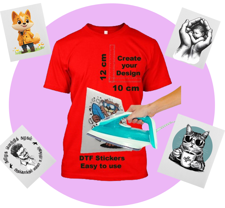 ✨ Customized DTF stickers starting at just ₹30 & above. your own design and apply easily with any iron box.